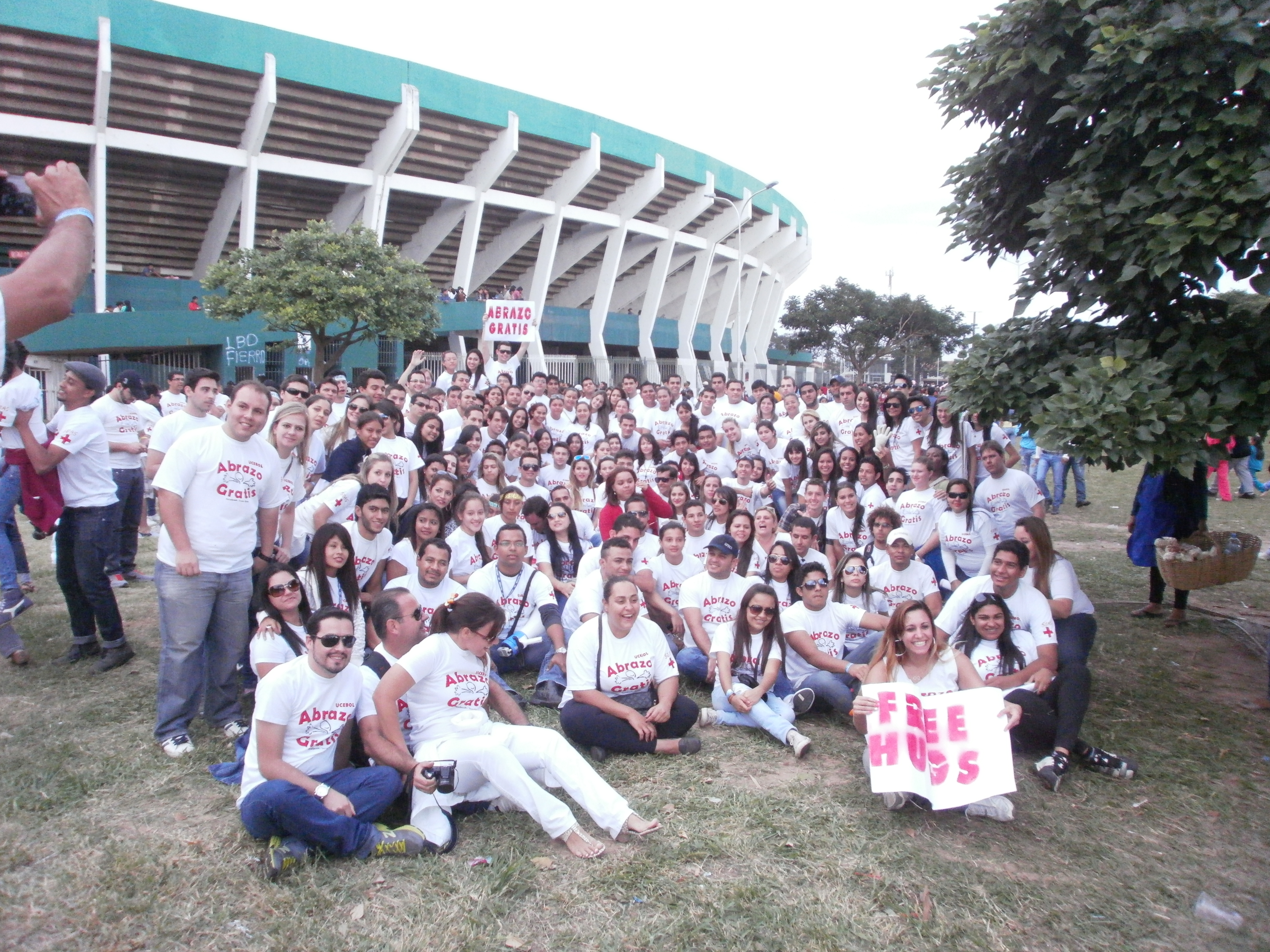 2013년 볼리비아 산타 크루스에서 "프리 허그 데이"를 기념하는 의대생들