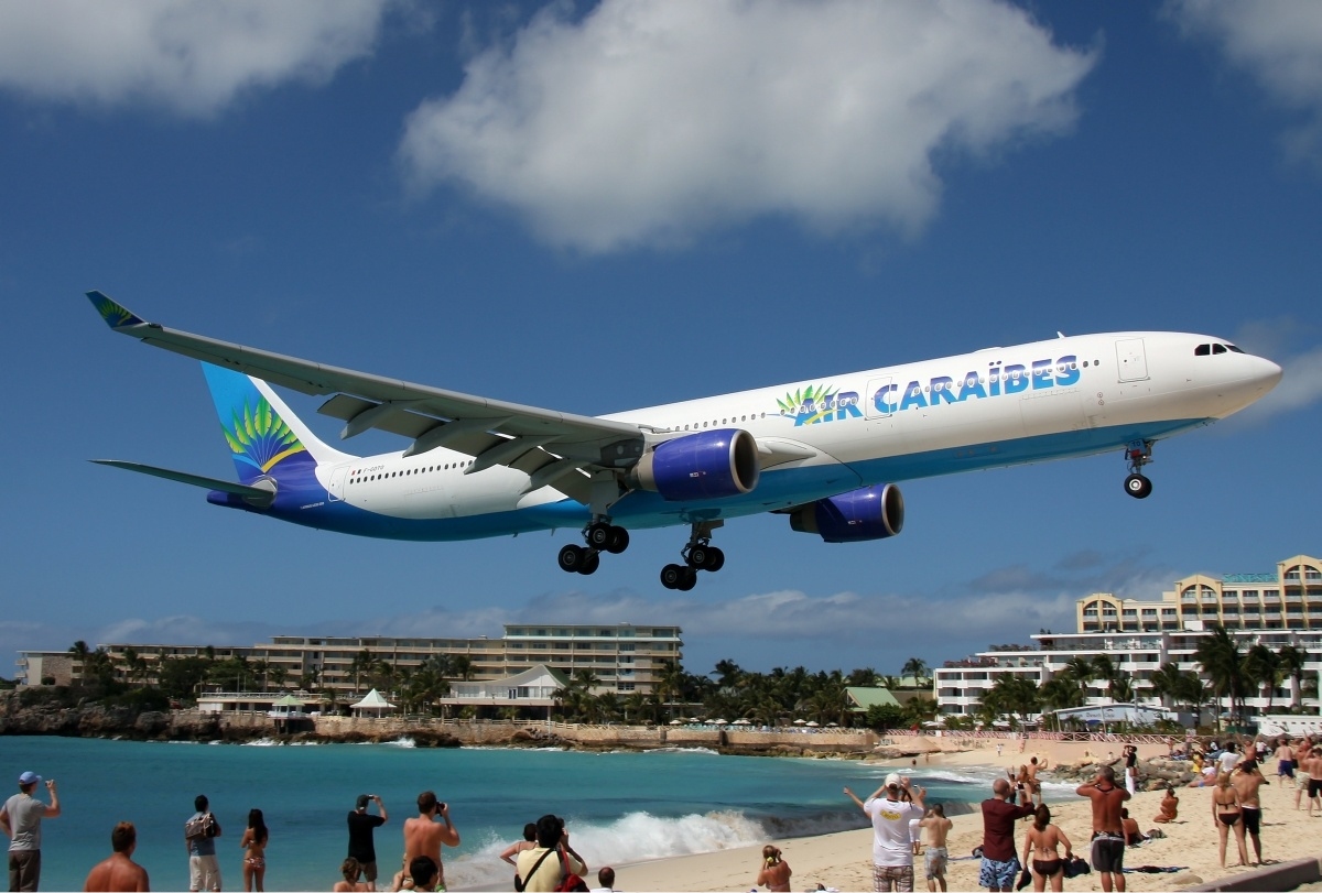 광동체 대형 여객기가 에메랄드빛 카리브해에 면한 마호 해변 상공에서 활주로 끝 해변을 고도 20m~30m 정도로 통과하며 착륙하는 광경은 세인트마틴 섬의 관광 명소로 매우 유명하다.