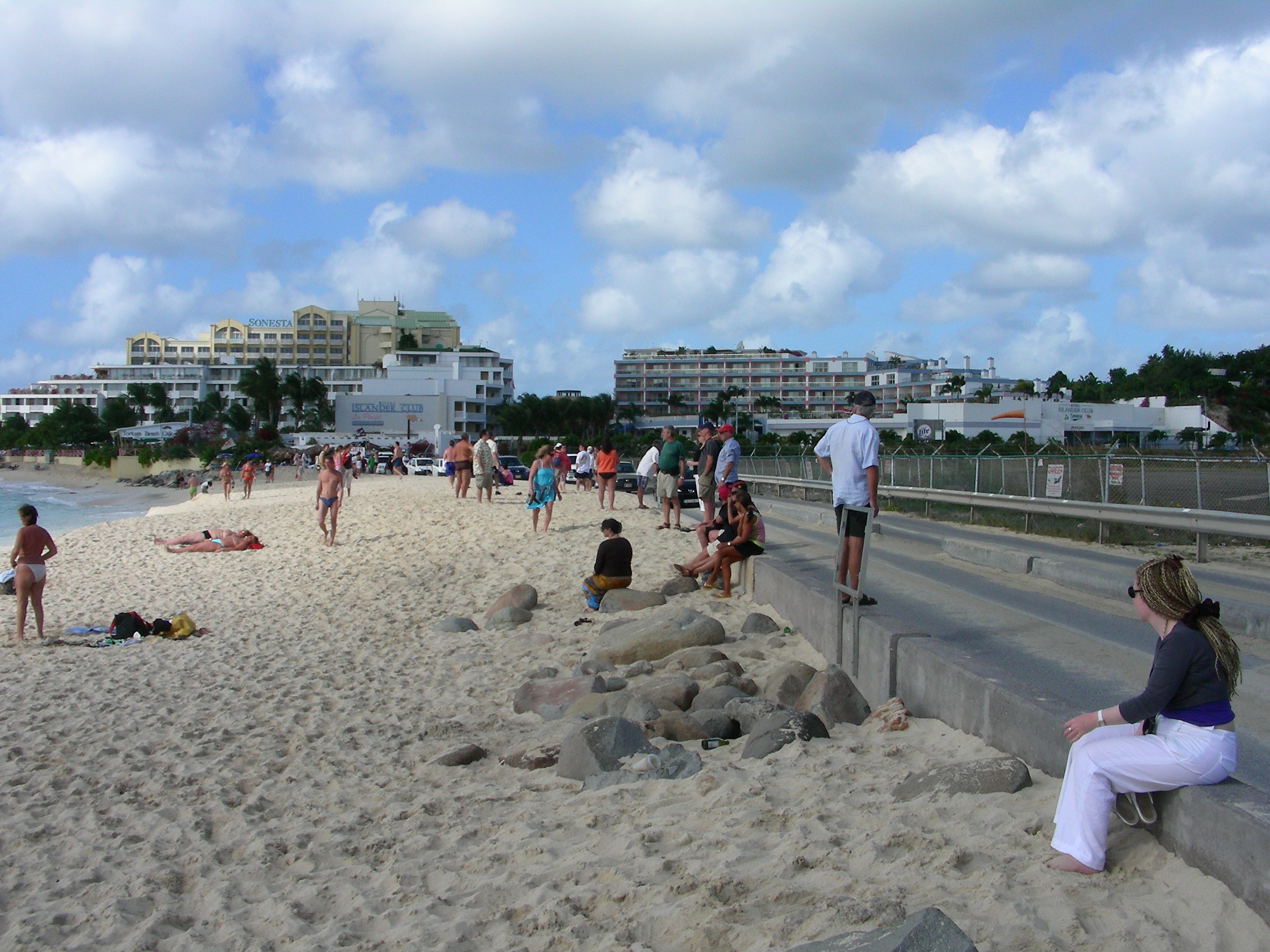 해변에서는 비행기가 이륙할 때의 "후방 기류"를 느낄 수 있는데, 하루 10회 정도 이륙하는 대형 비행기의 경우에는 매우 위험하다. "이착륙 시의 후방 기류로 인해 중상을 입거나 목숨을 잃는 경우도 있다"라는 주의 간판이 설치되어 있고 순찰도 이루어지고 있다. 하지만 2017년 7월에는 관광객이 후방 기류에 휩쓸려 사망하는 사고가 발생하기도 했다.[36]