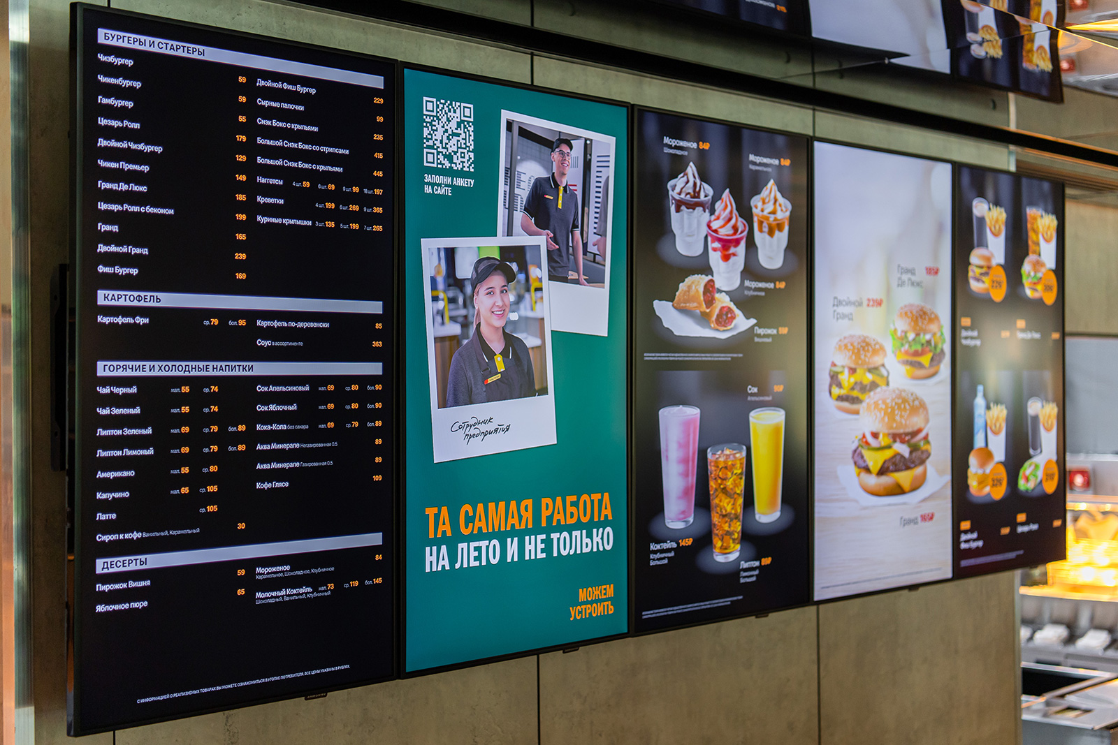 Меню доступное в сети предприятий быстрого обслуживания