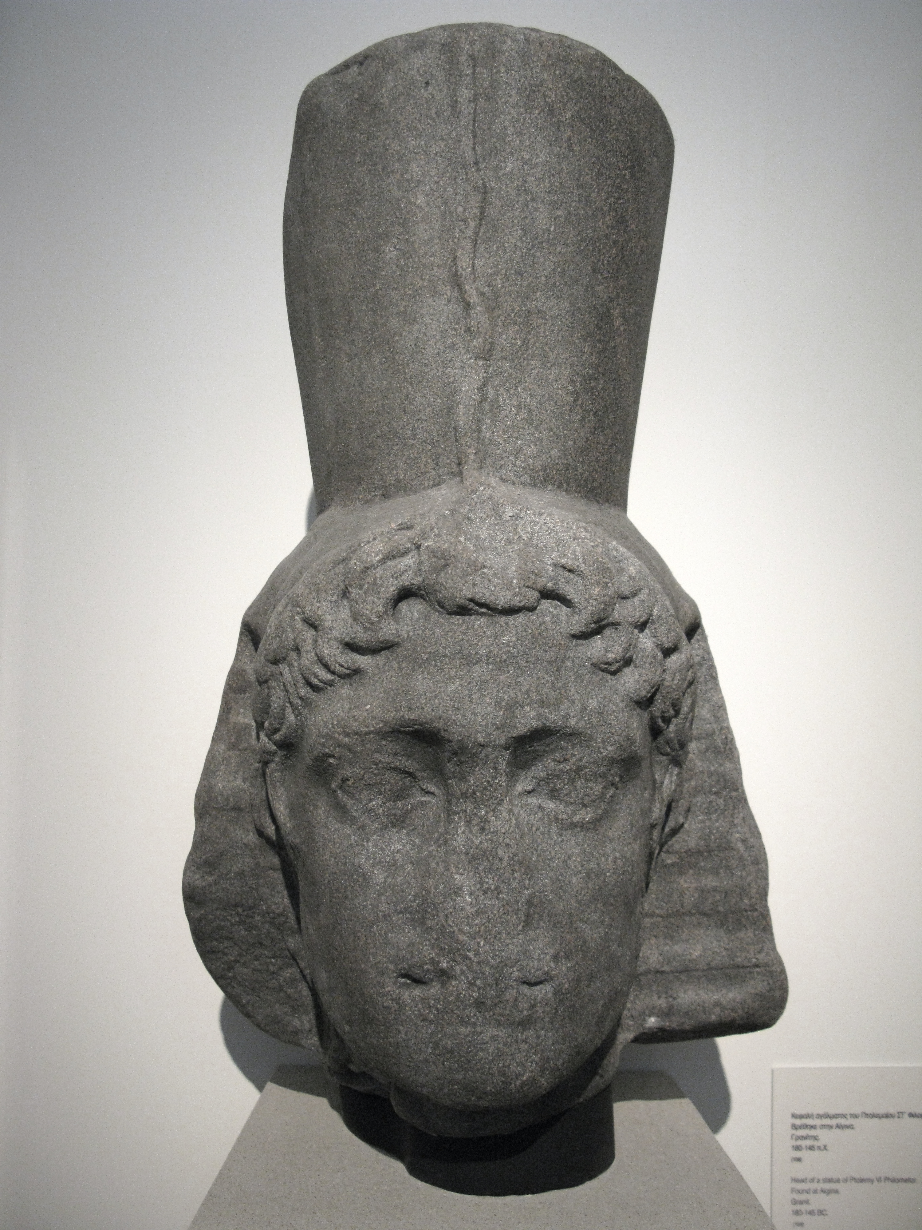 프톨레마이오스 6세는 프톨레마이오스 5세와 클레오파트라 1세의 아들로, 기원전 180년에 왕위에 올라 어머니 클레오파트라 1세와 공동 통치를 시작했다. 그는 누이이자 아내인 클레오파트라 2세와 결혼하여 여러 자녀를 두었으며, 제6차 시리아 전쟁 당시 셀레우코스 제국의 안티오코스 4세의 침공을 받았다. 이후 동생 프톨레마이오스 8세와의 권력 다툼, 셀레우코스 제국 내전 개입, 로마의 중재 등 복잡한 정치적 상황을 겪었다. 그는 셀레우코스 제국의 왕 알렉산드로스 발라스와 데메트리오스 2세를 지원하며 시리아를 침공했으나 전투 중 부상을 입고 사망했다. 그는 이집트 전통 종교를 존중하고, 유대인 공동체와 우호적인 관계를 유지했으며, 누비아 지역에 대한 통제권을 강화하는 등 다양한 통치 정책을 펼쳤다.