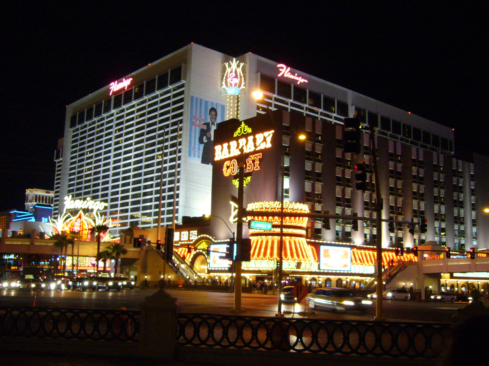 플라밍고 라스베이거스는 1945년 윌리엄 윌커슨이 건설을 시작한 라스베이거스 스트립의 카지노 리조트이다. 갱스터 벤자민 "벅시" 시겔이 자금 및 운영을 맡아 1946년 12월 개장했지만, 자금 부족과 시겔의 암살 등 우여곡절을 겪었다. 이후 여러 차례 소유주가 변경되었으며, 힐튼 호텔을 거쳐 2000년 플라밍고 라스베이거스로 명칭이 변경되었다. 19 에이커 규모의 부지에 호텔, 카지노, 수영장, 야생동물 서식지, 공연장 등을 갖추고 있으며, 여러 영화와 대중문화 작품에 등장하기도 했다.