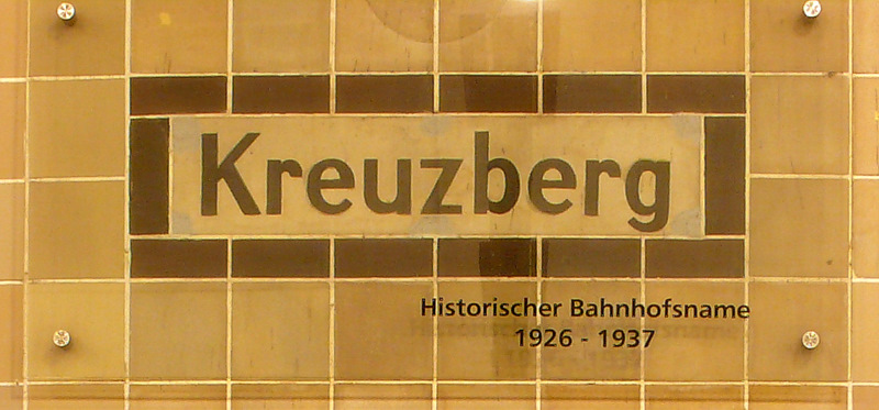 1926년 2월 14일 CII선 연장 구간의 크로이츠베르크(Kreuzberg)역으로 개통되었다. 알프레드 그레난데르가 역사를 설계했으며, 메르키셰스 무제움역과 더불어 승강장 내 중간 기둥이 없는 역이다. 개조 과정에서 발견된 이전 역명판 두 개는 유리 아래에 보존되어 있다.[5] 1927년 9월 10일에는 다음 역인 파라데슈트라세역(당시 명칭 공항역(Flughafen))까지 1개 역 연장되었다. 세계수도 게르마니아 계획에 따라서 베를린 템펠호프 공항의 증축과 남북축 대로를 계획하면서, 1937년에는 다음 역이었던 공항역에서 이름을 가져왔고, 과거의 공항역은 파라데슈트라세(Paradestraße)역으로 개칭되었다.[3]