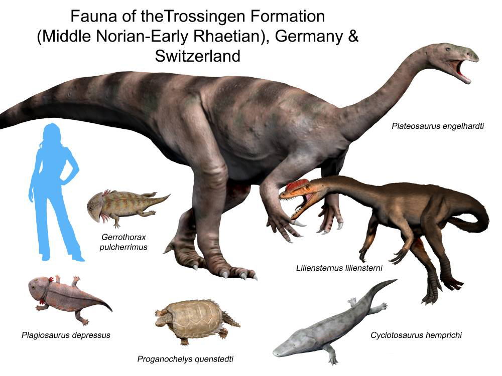 검은 숲 트로싱겐 채석장은 20세기에 반복적으로 발굴되었다. 1911년~1932년 독일 고생물학자 에버하르트 프라스, 프리드리히 폰 후네, 라인홀트 지만의 조사에서 ''플라테오사우루스'' 골격 35개 등이 발견되었다. 슈바벤에서 많은 표본이 발견되어, 프리드리히 아우구스트 폰 퀠슈테트는 ''슈바벤의 린트웜'' (드래곤)이라 불렀다. 많은 자료가 1944년 슈투트가르트 국립 자연사 박물관의 전신인 Naturaliensammlung 폭격으로 파괴되었으나, 2011년 라이너 쇼흐의 연구에 따르면 지만의 1932년 발굴 자료는 여전히 이용 가능하다.