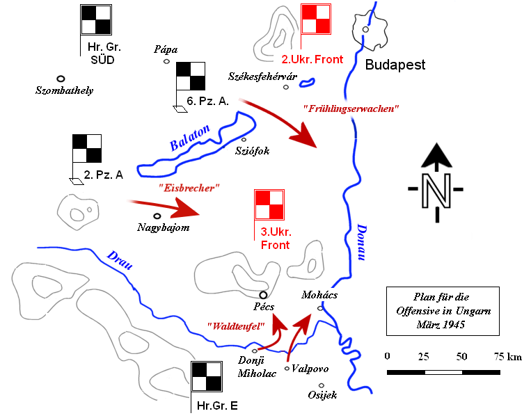 1945년 1월부터 소련 붉은 군대공세를 시작하여 2월 14일 수도 부다페스트를 점령했다. 히틀러는 헝가리 전선에서 주도권을 되찾고 유전을 확보하며 부다페스트를 다시 탈환하고자 했다.