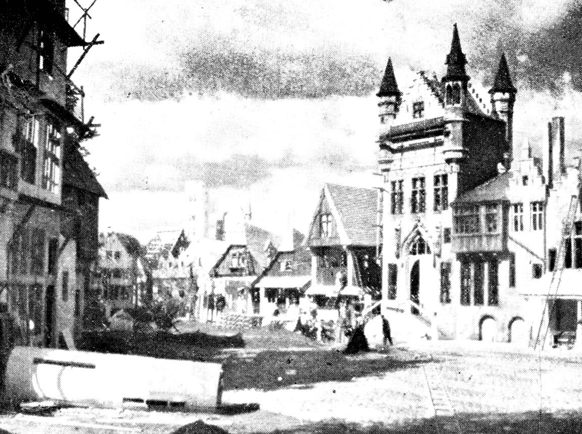 세트의 규모와 디테일은 페이더와 메르송이 독일 자금 제공자에게 주장한 덕분에 달성되었으며, 이는 그들이 에피네이 스튜디오 중앙에 운하를 파도록 이끌었다. 플랑드르 마을은 메르송의 특징인 양식화된 깊이를 제공하기 위해 현대 건축을 사용하여 운하 주변에 만들어졌다.[7]