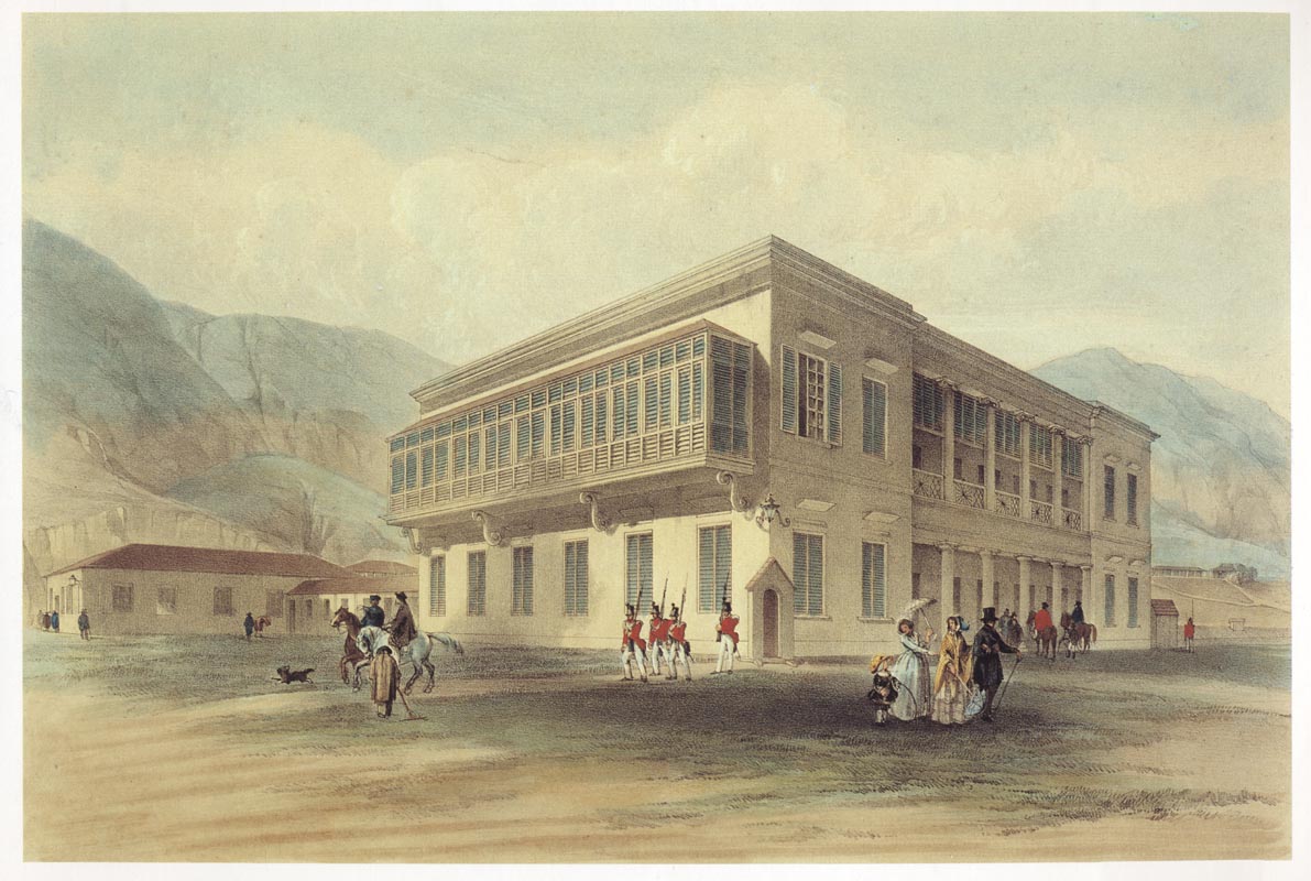 건물은 그리스 복고 양식으로 지어졌다. 건물을 설계한 사람은 스코틀랜드 출신으로 건물의 감리를 맡았던 머독 브루스나 왕립 공병대의 버나드 콜리즌 장교로 추측된다.[6] 건물을 처음으로 사용한 사람은 조지 찰스 다귈라 장군(major general)이었다. 그는 1844년부터 1846년까지 영국의 지휘 장군(General Officer Commanding, GOC)이자 부총독이었다.[6]