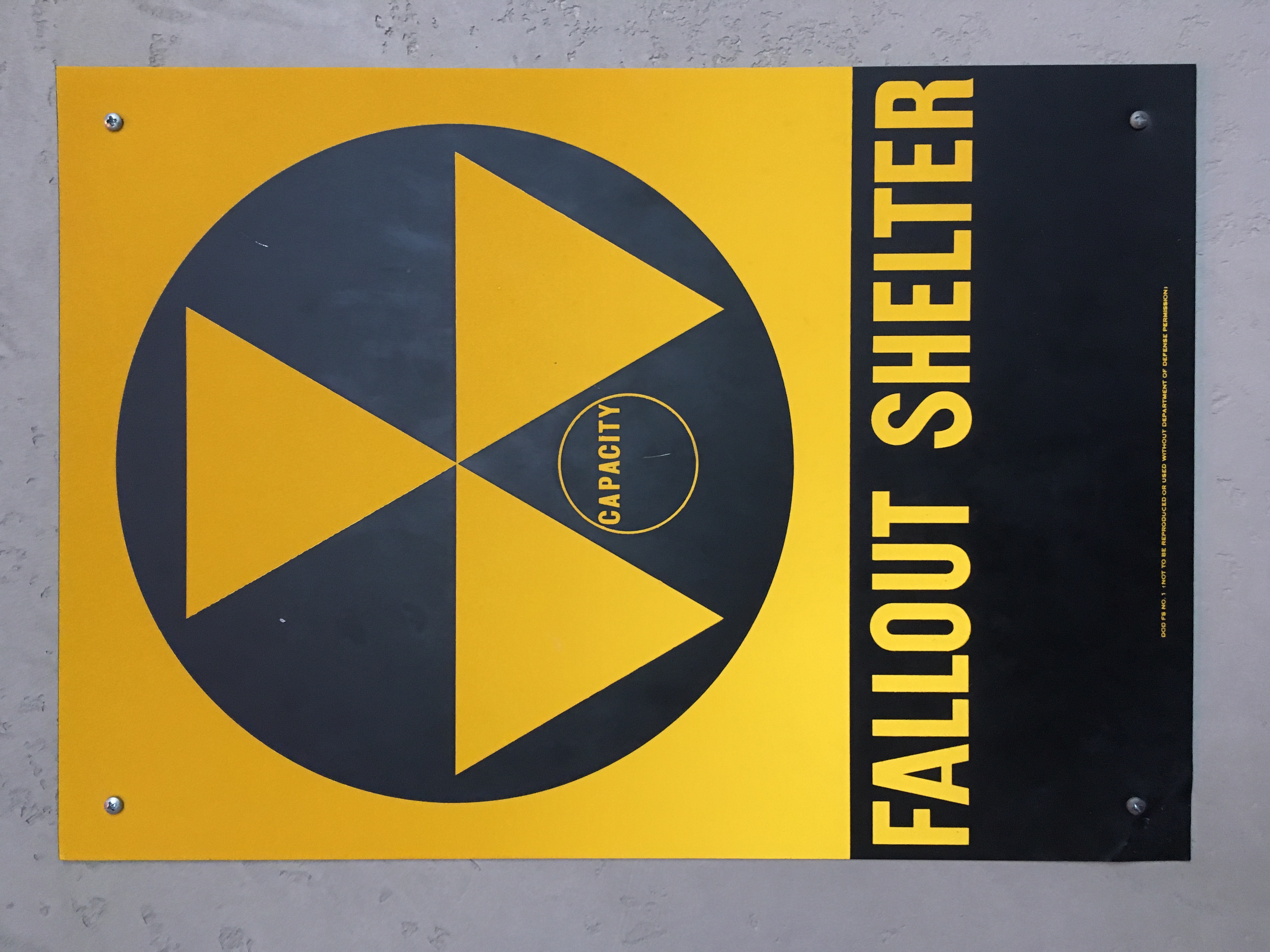 1961년 미국은 핵 공격 발생 시 시민 방위 준비의 일환으로 전국 각지에 방사능 방호호 대피소(fallout shelter)를 설치하기 시작했다. 이 대피소들은 로버트 블레이클리(Robert W. Blakeley)가 디자인한 오렌지색-노란색과 검은색의 세잎 갈래(trefoil) 기호로 표시되었다.[3]