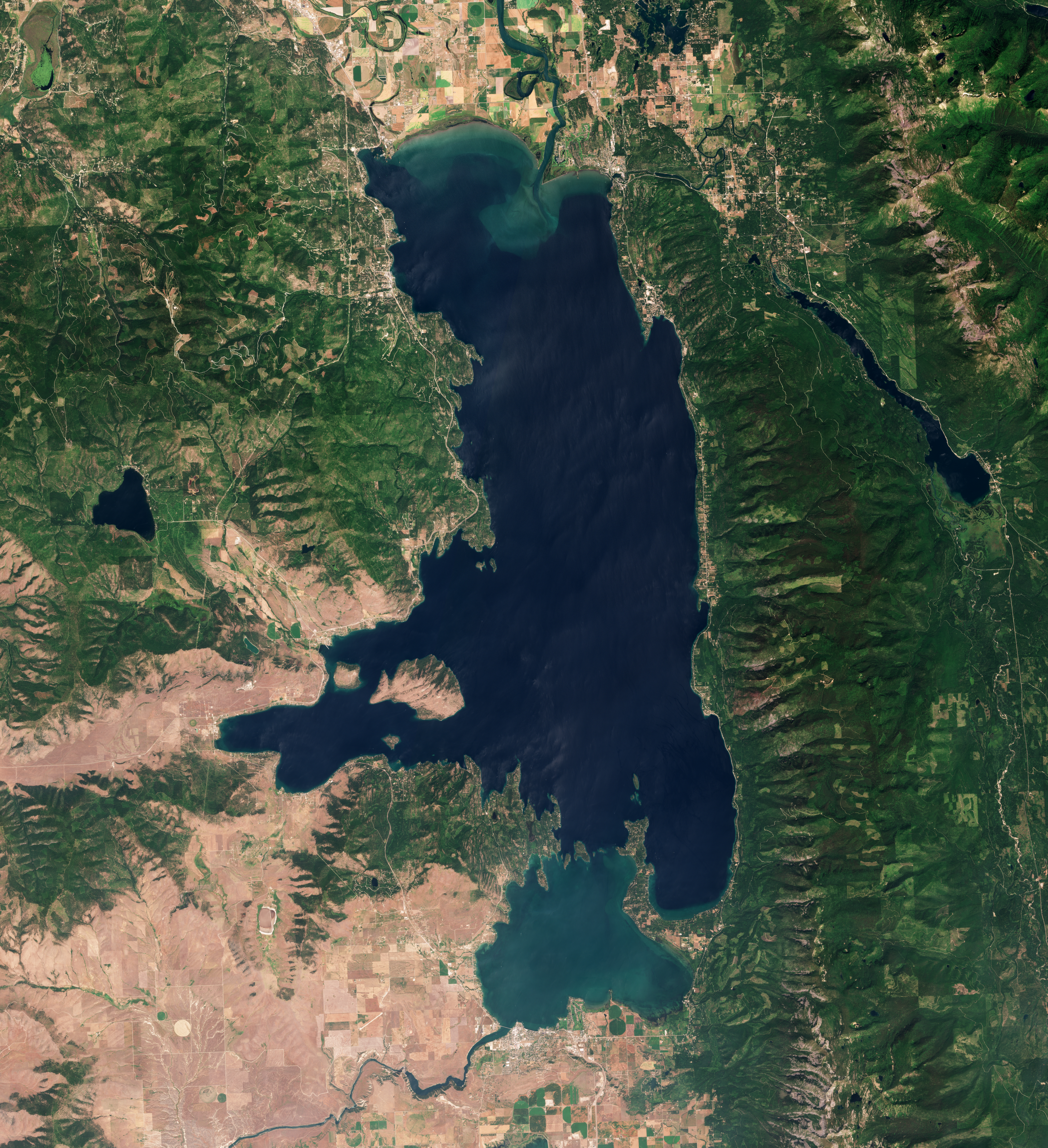 플랫헤드 계곡은 플랫헤드 강의 빙하 댐으로 형성되었으며, 이처럼 북쪽 내륙 지역에서는 놀라울 정도로 온화한 기후를 유지한다. 태평양은 서쪽으로 거의 644km 떨어져 있다. 온화한 기후로 인해 동쪽 해안에는 체리 과수원이, 서쪽 해안에는 와인 생산을 위한 포도원이 조성되어 있다.[5] 또한 호수 주변에는 사과, 배, 자두 과수원과 채소, 건초, 꿀, 묘목, 크리스마스 트리, 잔디/터프 및 밀 생산지도 있다.