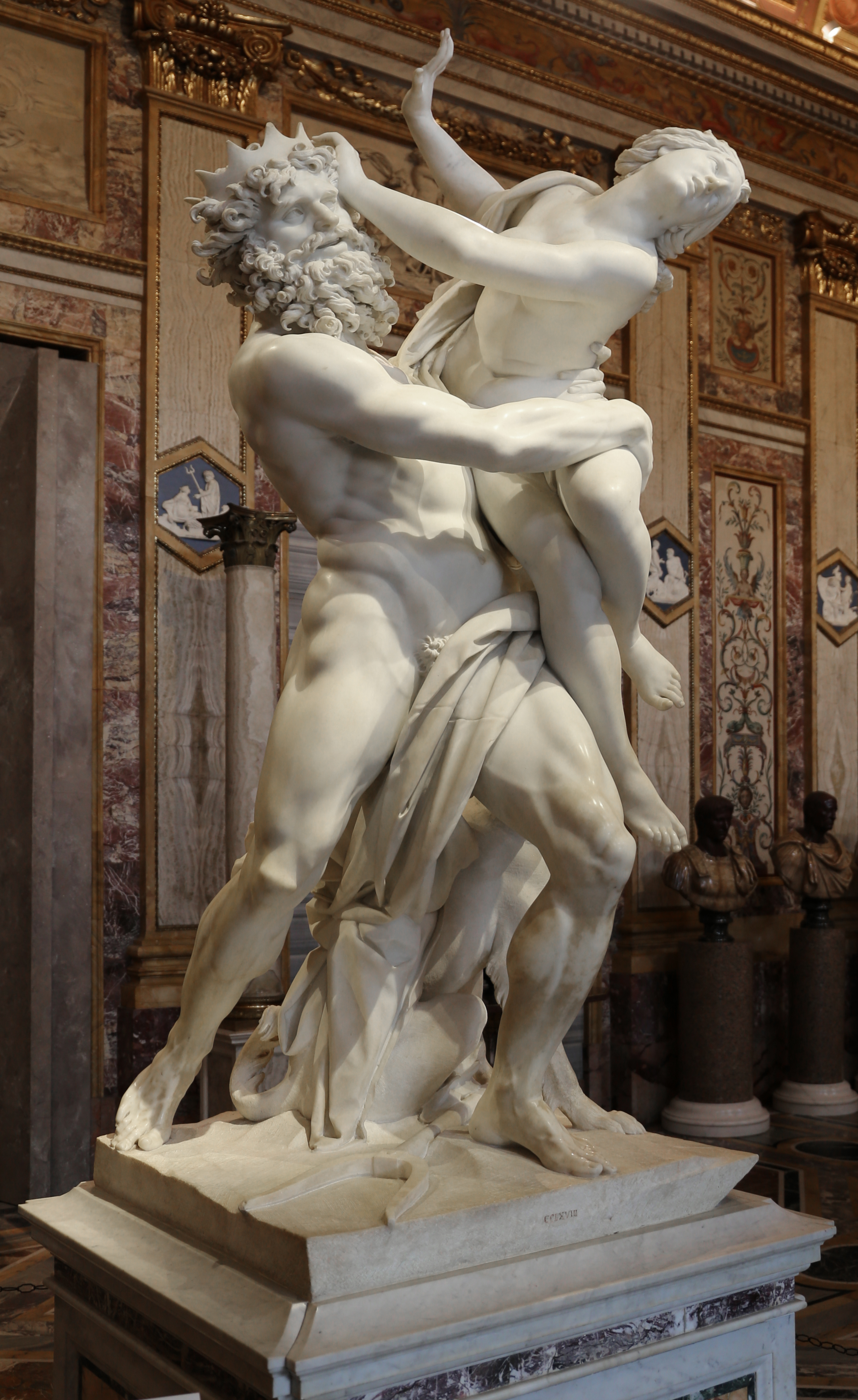 잔 로렌초 베르니니의 작품 ''프로세르피나의 강탈''에서 플루톤은 페르세포네를 납치하는 장면으로 묘사된다. 이 신화는 헤시오도스의 《신통기》와 《호메로스 찬가》의 《데메테르 찬가》에 처음 등장하며, 하데스("숨겨진 자")가 페르세포네를 강제로 데려가는 내용이다.[28] 엘레우시스 비의의 영향으로 플루톤은 페르세포네와 함께 사후 세계에서 입문자를 받아들이는 신성한 부부로 여겨지며, '폭력적인 납치범'이라는 이미지와 분리되었다.[29]
