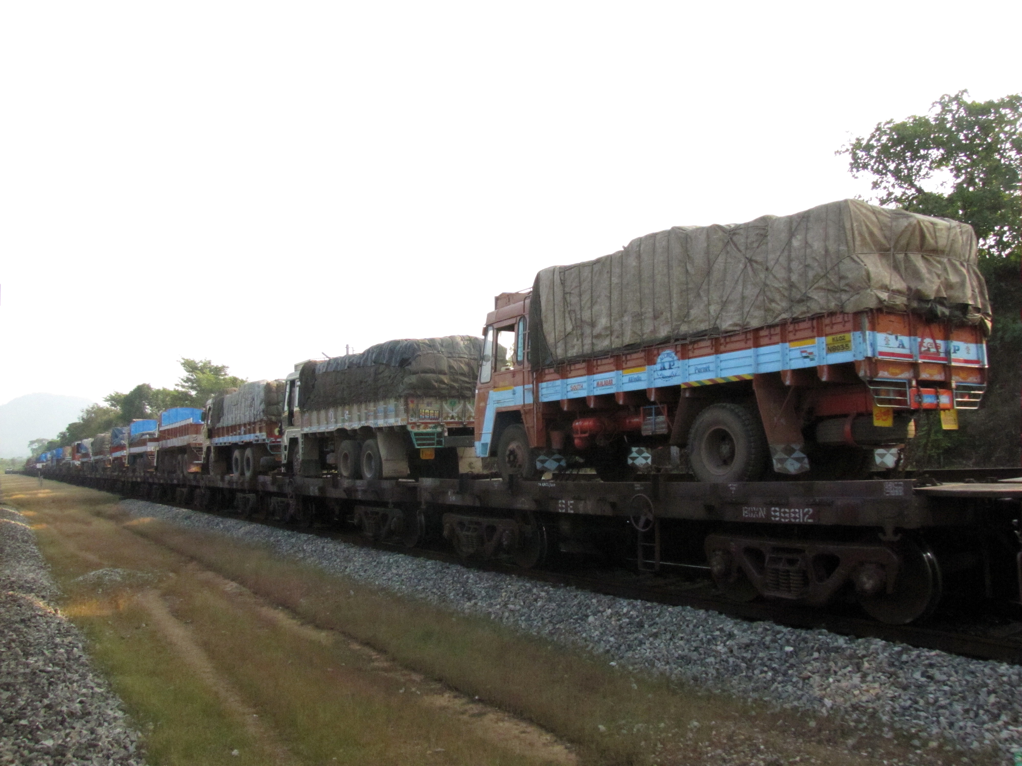 트럭이 여정의 일부를 기차로 운송하는 철도 서비스는 롤링 로드 또는 롤링 하이웨이라고 한다. 이와 관련된 운송 방법으로 도로 트랙터 없이 세미트레일러를 철도로 운송하는 것이 있는데, 이를 "플랫카에 트레일러 적재(TOFC)"라고도 한다. 미국의 TOFC 교통량은 1957년 화물의 1%에서 1964년 5%, 1986년 15%로 증가했다.[6][7]
