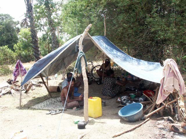 right에서 난민들이 지은 대나무 및 짚집, 1984년 5월]]