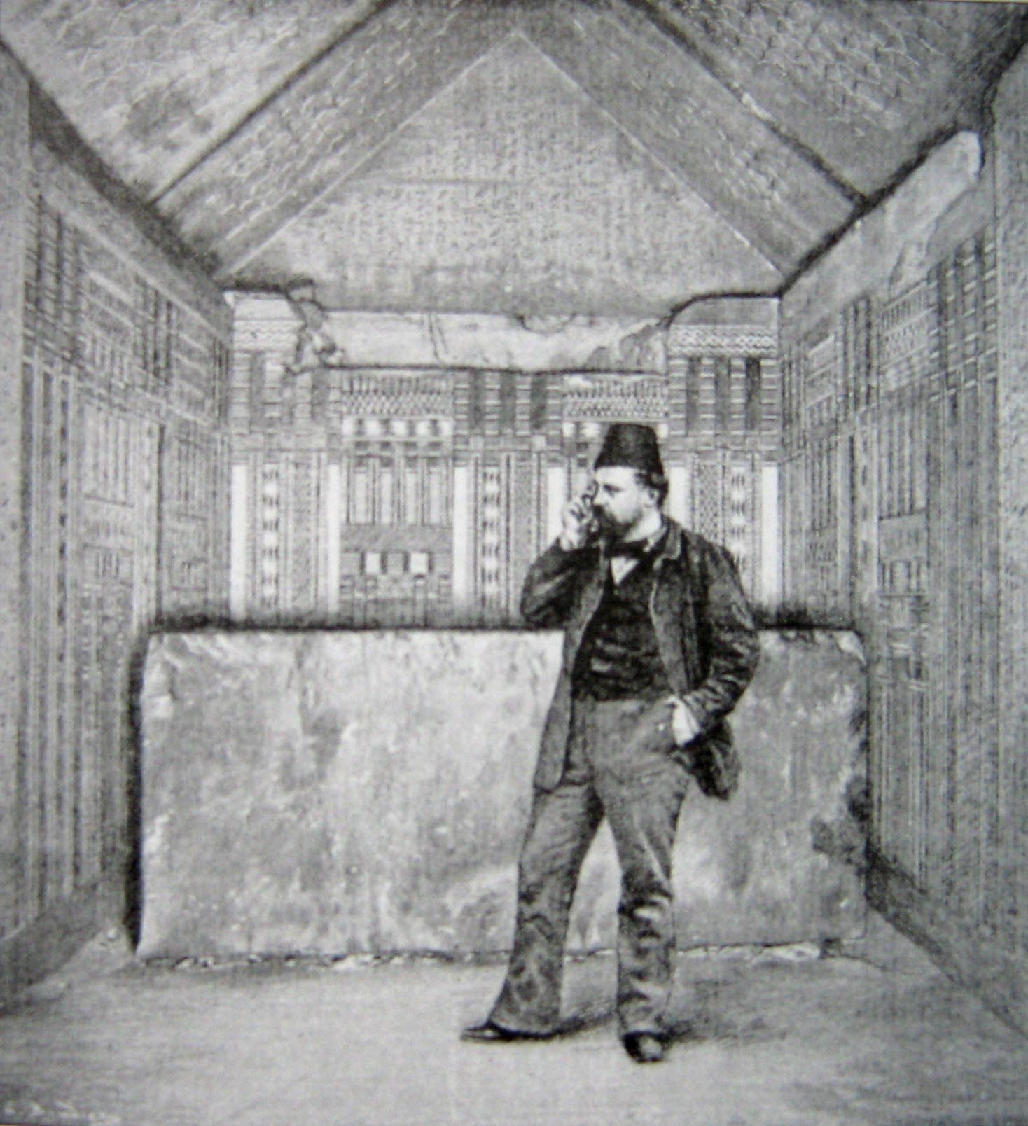 가스통 마스페로(Gaston Maspero)는 프랑스 동방 고고학 연구소(Institut Français d'Archéologie Orientale)의 소장으로, 1880년 이집트 사카라 남쪽(South Saqqara)에서 페피 1세의 피라미드(pyramid of Pepi I)로 추정되는 구조물의 지하 방을 발견하고 벽에 상형 문자가 덮여 있음을 확인했다. 이집트의 '발굴 책임자'인 오귀스트 마리에트(Auguste Mariette)는 피라미드에서 글자가 발견된 적이 없다는 이유로 마스타바(mastaba)일 것이라고 추정했다.