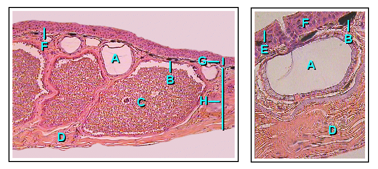 - '''피지선:''' 피지를 분비하여 피부를 윤활하게 하고 보호한다.