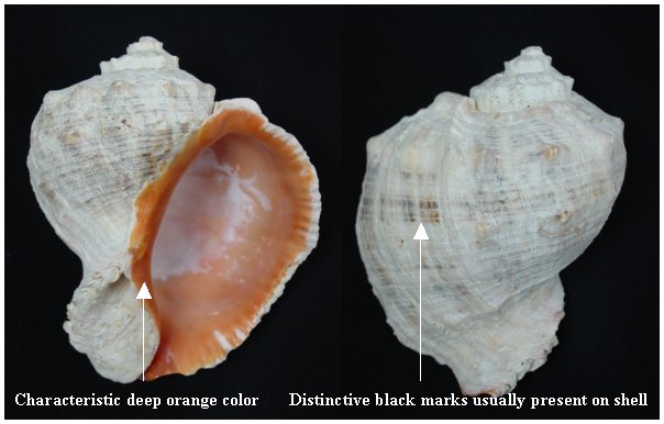 이 종의 진단적 특징은 구멍과 주름띠에서 발견되는 짙은 주황색이다. 껍데기의 높이는 최대 180mm에 달할 수 있다. 고둥과 등과 같은 종류이다. 큰 것은 15cm를 넘고, 최대 20cm 정도가 된다. 패각구가 붉게 물들어 붉은 소라(赤螺, 아카니시)라는 이름이 있다. 어부 등은 줄여서 "니시"라고 부른다. 야나가와시 등 아리아케해에서는 "켙푸", "코게", "마루게" 등으로 부른다.