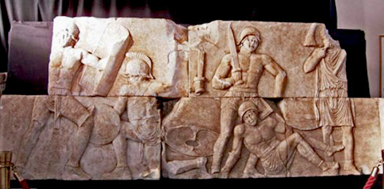 피아노 로마노 영묘는 검투사 싸움 장면이 부조로 정교하게 장식된 13개의 대리석 덩어리로 구성되어 있다.[20]