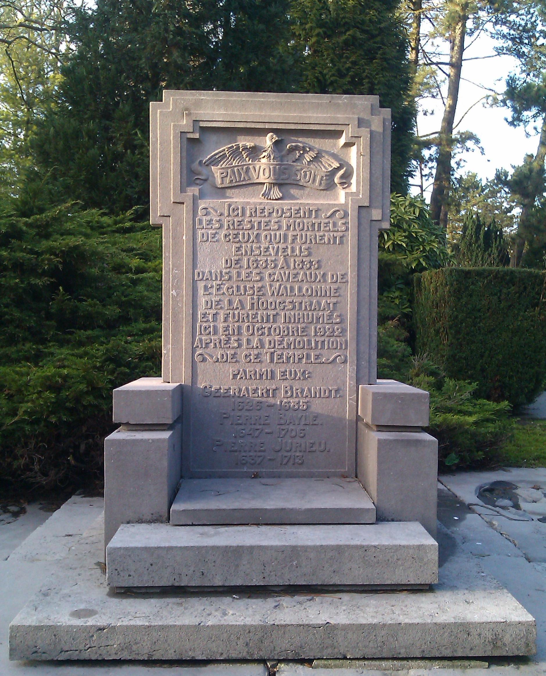 벨은 1706년 12월 28일에 로테르담에서 사망했다.[3] 그는 로테르담의 왈롱 교회에 묻혔으며, 7년 후에는 피에르 쥐리외도 그곳에 묻혔다. 1922년 이 교회가 철거된 후, 무덤은 로테르담의 크로스위크 일반 묘지로 옮겨졌다. 기념비에는 피에르 벨이 이 무덤에 있다는 것이 표시되어 있다.