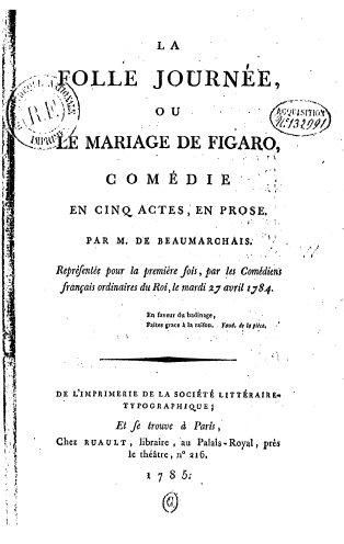보마르셰는 작품의 건전성을 증명하기 위해 네 번이나 검열을 신청하고, "문학 법정"을 개최하는 등 노력했다. 결국 루이 16세도 굴복하여 1784년 4월 27일, 《피가로의 결혼》은 초연되었고, 파리 시민들이 모두 몰려온 듯한 대성공을 거두었다.