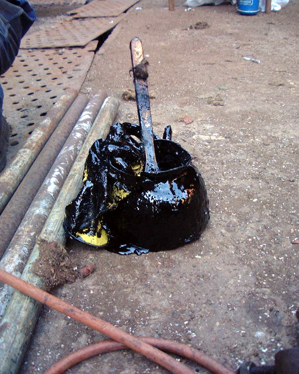 고대부터 통나무통이나 목조선의 방수에 사용되었다 (흑선).