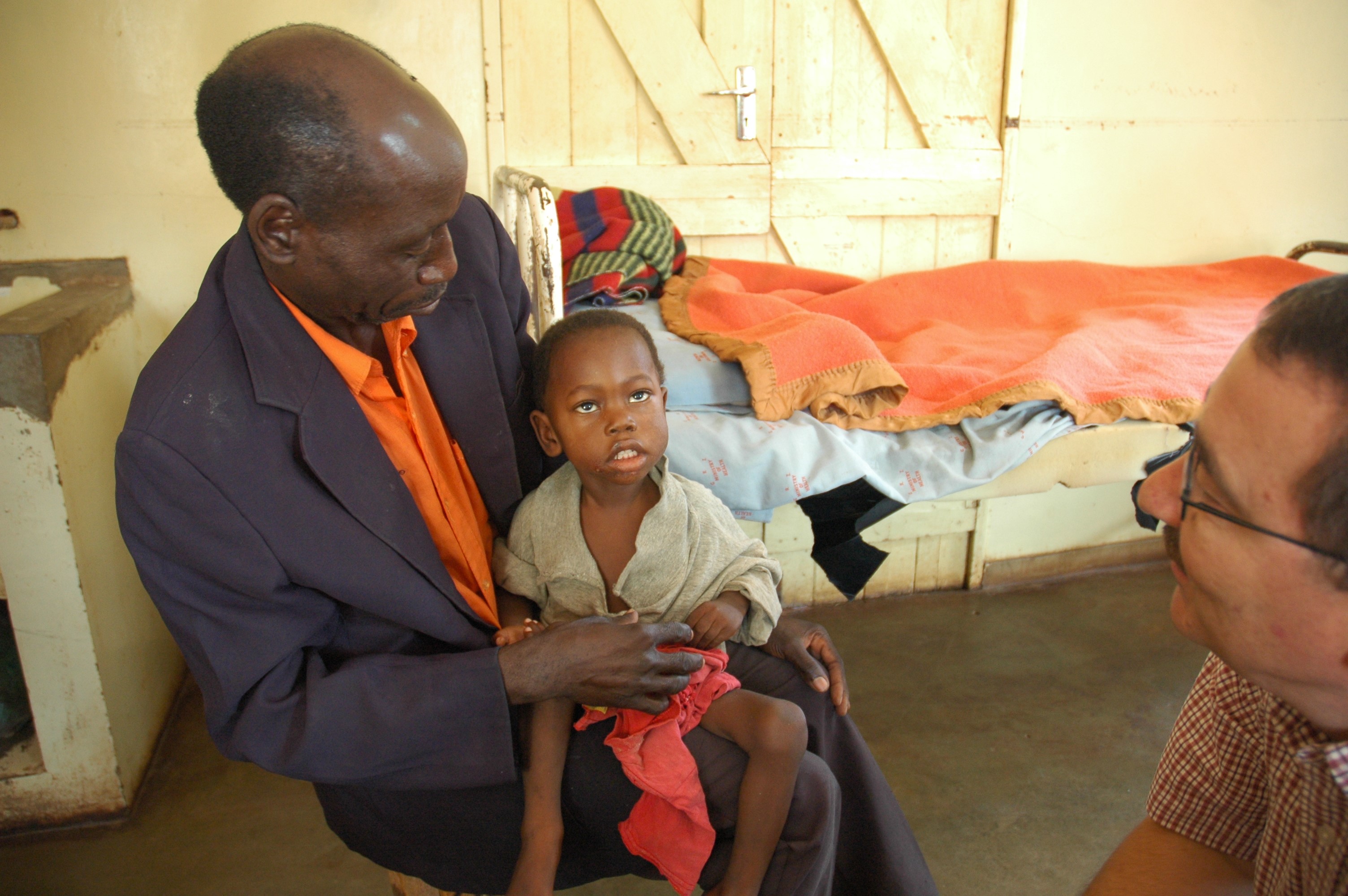 잠비아의 한 마을 주민이 필립 투마 박사 덕분에 목숨을 건진 손자를 안고 있다. 뇌성 말라리아로 죽을 뻔했지만 영구적인 시각 장애를 갖게 되었다.