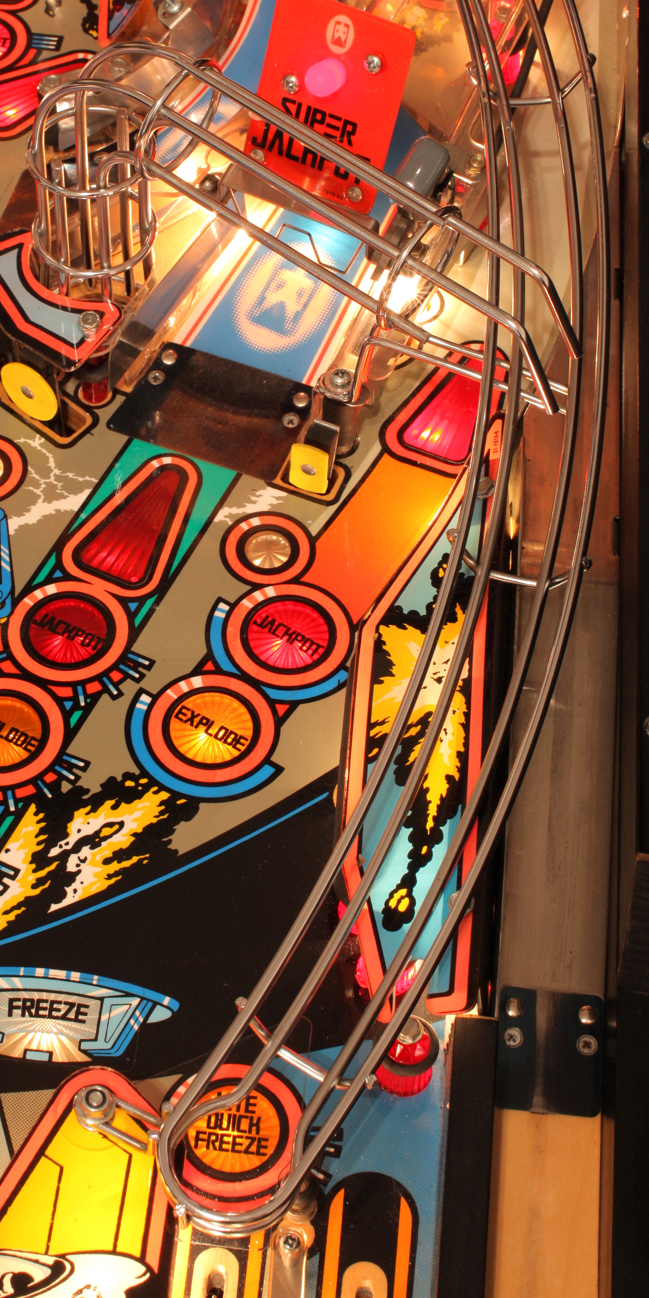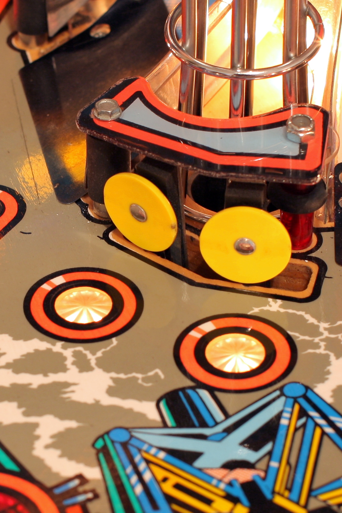 스티브 코르덱은 직류(DC) 전원 공급 장치를 추가하여 플리퍼 출력을 높였다. 트리플 액션은 플레이필드 하단에 플리퍼 두 개만 있는 최초의 게임이었지만, 플리퍼는 바깥쪽을 향하고 있었다. 1950년 고틀리브의 저스트 21은 익숙한 이중 내향 플리퍼 디자인을 채택했지만, 플리퍼 간 간격이 넓었다. 같은 해 고틀리브의 스팟 볼러는 내향 플리퍼가 가까이 배치된 최초의 게임이었다.[13]