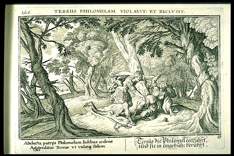 오비디우스의 『변신 이야기』에 따르면, 필로멜라는 테레우스에게 다음과 같이 말했다. "더 이상 부끄러워하지 않아요. 이 일을 널리 알릴 거예요. 기회가 있다면, 사람들 앞에서 누구에게라도 말할 거예요. 만약 당신이 여기에 가두려 한다면, 숲과 바위를 연민으로 움직이게 할 거예요. 하늘도 그걸 들을 것이고, 만약 하늘에 신이 있다면 신도 내 말을 들을 거예요."[13]
