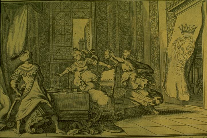 아레스의 아들 테레우스는 트라키아의 왕으로, 프로크네와 결혼했다. 프로크네는 남편에게 여동생 필로멜라를 아테네에서 데려와 달라고 부탁했다. 테레우스는 여행 도중 필로멜라에게 욕정을 품었고, 트라키아에 도착하자 숲 속 오두막으로 필로멜라를 끌고 가 강간했다.[7]