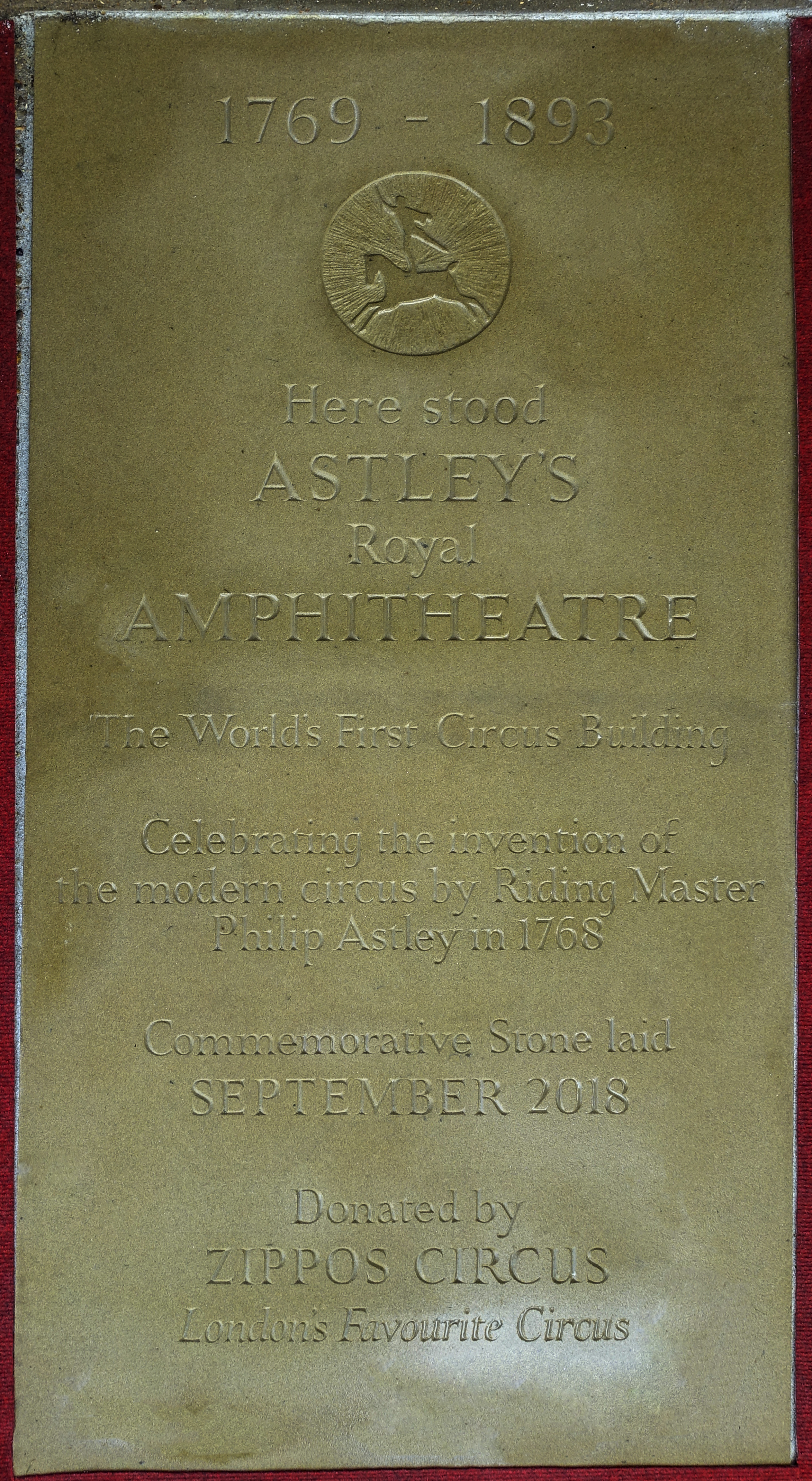 2018년 9월 14일, 세인트 토마스 병원 정원에 원형 경기장을 기념하는 판석이 세워졌다. 이는 지포스 서커스의 설립자이자 이사인 마틴 버튼의 주도로 이루어졌으며, 트릭 라이더와 그의 말을 포함한 지포스 서커스의 의상을 갖춘 공연자 그룹이 버튼과 함께 판석을 세우는 것을 도왔다.