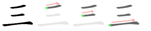 "둘"을 의미하는 글자는 두 획으로 이루어져 있다: 二|이중국어. 이 경우 두 획 모두 왼쪽에서 오른쪽으로 쓰여지지만, 위쪽 획이 먼저 쓰여진다. "셋"을 의미하는 글자는 세 획으로 이루어져 있다: 三|삼중국어. 각 획은 맨 위 획부터 시작하여 왼쪽에서 오른쪽으로 쓰여진다.