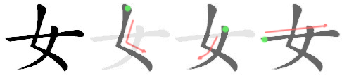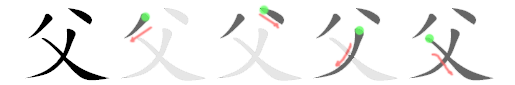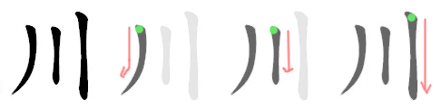 오른쪽에서 왼쪽으로 대각선(丿|별중국어)이 왼쪽에서 오른쪽으로 대각선(乀|불중국어)보다 먼저 쓰여진다(예: 文|문중국어).