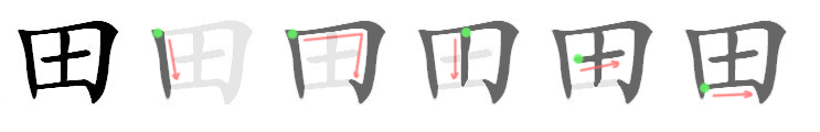 위쪽과 아래쪽 구성 요소가 있는 경우, 위쪽 구성 요소가 먼저 쓰여지고, 그 다음 아래쪽 구성 요소가 쓰여진다(예: 品|품중국어 및 星|성중국어).