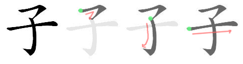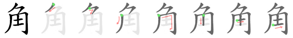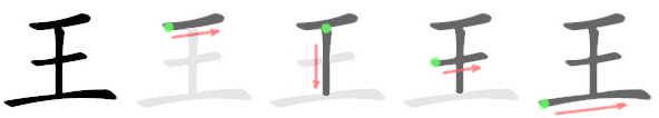 작은 획은 일반적으로 마지막에 쓰여진다(다음과 같은 작은 "점"처럼): 玉|옥중국어, 求|구중국어, .