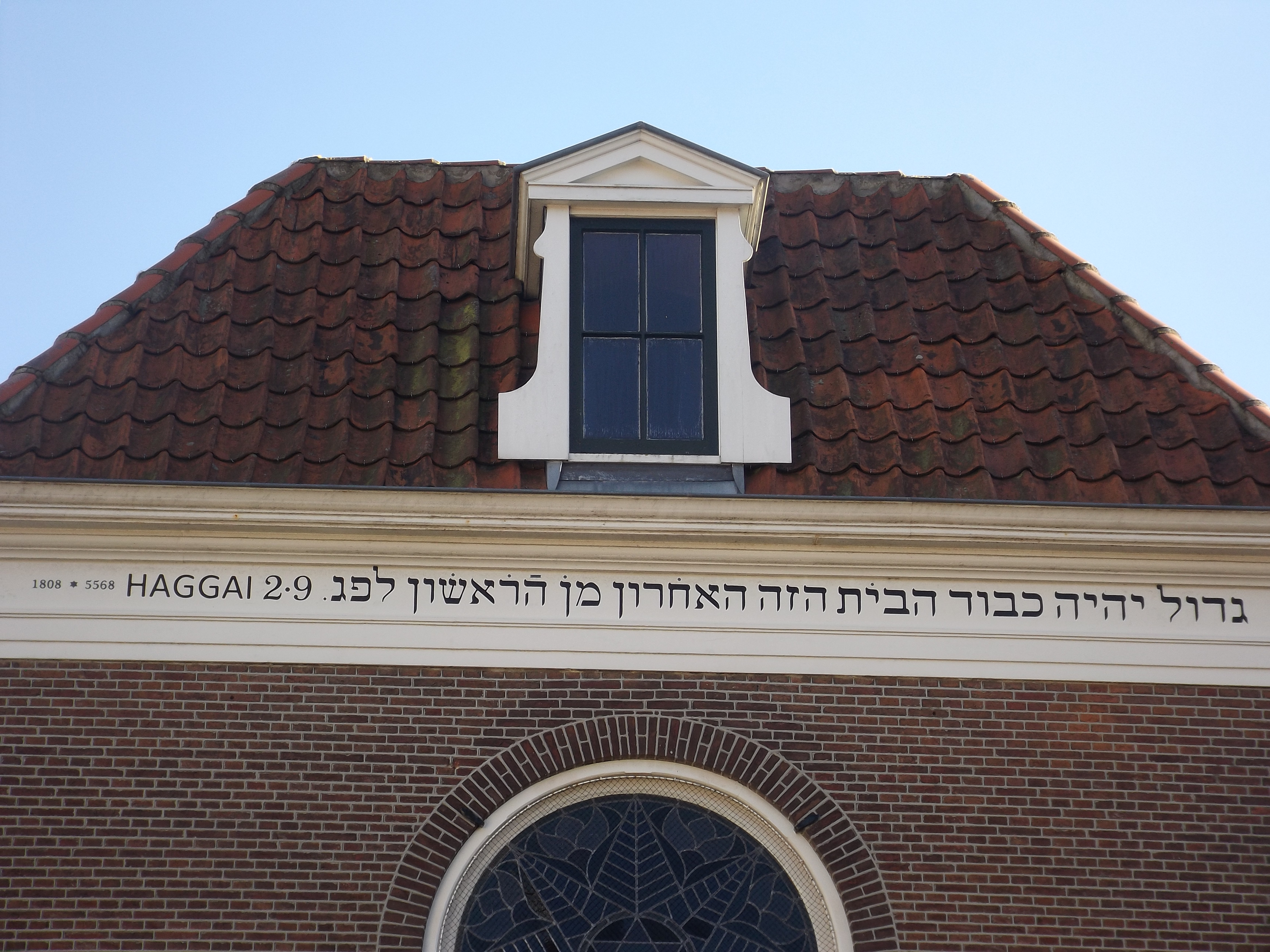 알크마르의 회당에 있는 하깨서 2:9의 구절: "이 마지막 성전의 영광이 이전 성전의 영광보다 더 클 것이다."