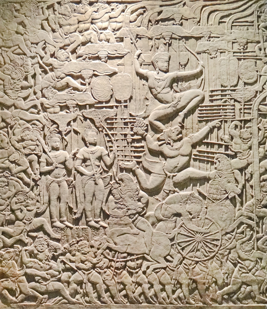 그는 돌아와서 정찰대에게 일어난 일을 말하고, 그들은 키시키다로 서둘러 돌아간다. 시타가 안전하고 그를 기다리고 있다는 소식을 듣고 라마는 수그리바의 군대의 지원을 받아 란카로 진군한다. 이렇게 전설적인 란카 전투가 시작된다.[38]