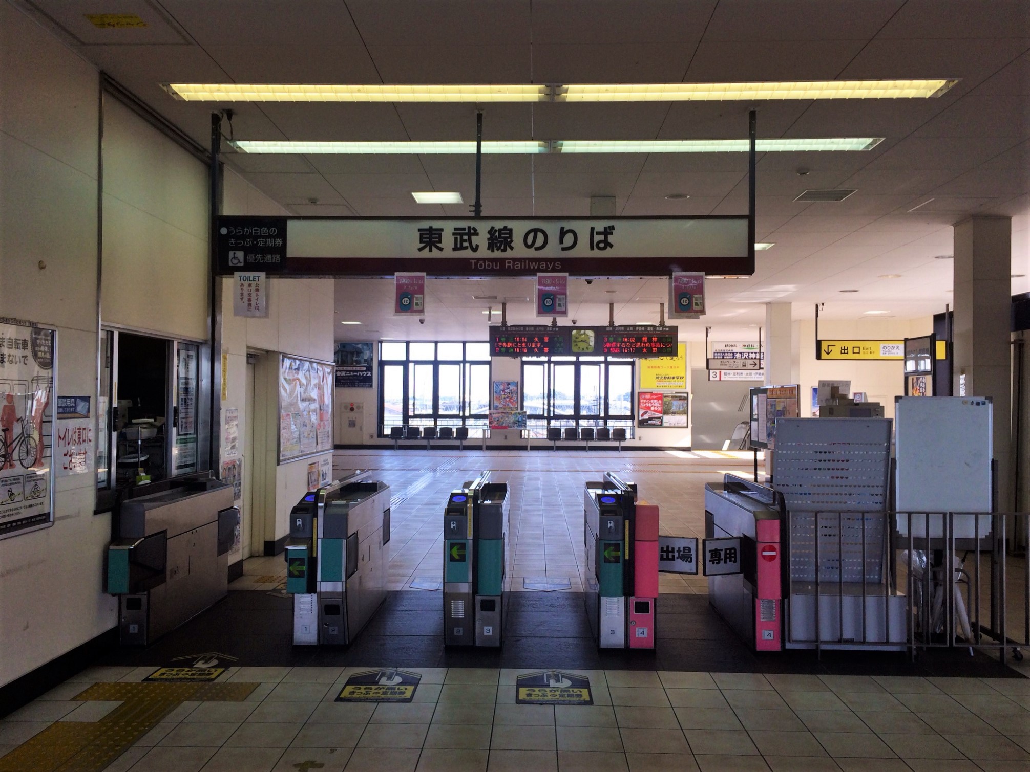 동서연결통로를 겸한 교상 역사를 가지고 있으며, 도부 철도와 지치부 철도의 개찰구는 분리되어 있다.[8] 과거에는 도부 철도 관할역으로 개찰구를 공유했지만, 2004년 교상 역사 준공으로 분리되었다.[8] 도부 철도와 지치부 철도 모두 개찰 내에 남녀별 수세식 화장실이 설치되어 있다.[8]