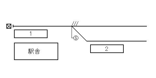 단선 승강장 2면으로 되어 있다. 통상적으로는 역사 건물 쪽 1번 승강장에서 승하차한다. 먼저 출발하는 전차가 1번에 정차하고 있을 때는 센오 쪽 2번 승강장에서 하차한다. 역사 건물에는 정기권 발매소가 있어, 정기권, 회수권 등을 구입할 수 있다.