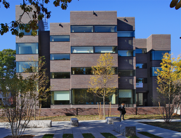 에드워드 라라비 반스가 1970년에 설계한 로크펠러 홀은 1층에 세미나실과 식당을 갖추고 있으며, 위층은 학생 기숙사로 사용되었다.[18] 2008년 VSBA/Venturi, Scott Brown and Associates, Inc.에 의한 개조 공사를 통해 위층은 직원 사무실로 바뀌었으며, 접근성이 현대화되었고, 하버드에서 네 번째 LEED 골드 인증 건물이 되었다.[19]