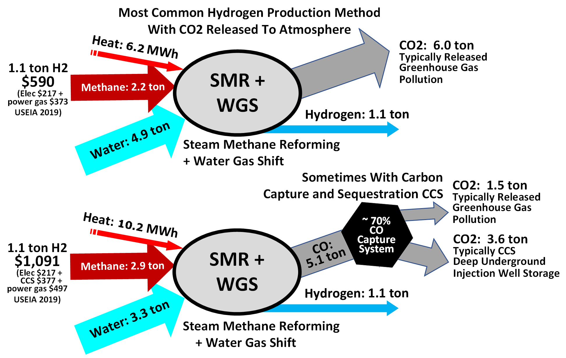 천연 가스(메탄)의 증기 개질을 통한 수소 생산 과정은 다음과 같다.1. 원료인 천연 가스에서 황 화합물을 제거한다. 황은 촉매의 활성을 저하시키기 때문이다. 촉매 수소화 반응을 통해 황 화합물을 기체 황화 수소로 변환한다.