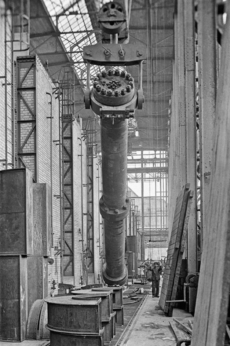 프리츠 하버는 조수 로버트 르 로시뇰과 함께 고압 장치와 촉매를 개발하여 실험실 규모에서 하버 공정을 시연했다.[9][10] 1909년 여름, 그들은 공기에서 암모니아를 시간당 약 125ml의 속도로 생성하는 데 성공했다. 이 공정은 독일 화학 회사 BASF에 인수되었고, 카를 보쉬는 하버의 탁상용 기계를 산업 규모로 확대하는 임무를 맡아 1910년에 성공했다.[5][11] 하버와 보쉬는 이 공로로 각각 1918년과 1931년에 노벨 화학상을 수상했다.[5]
