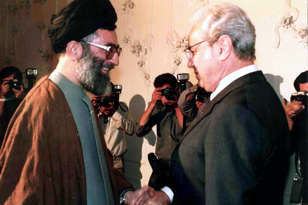 1987년에는 테헤란에서 당시 이란 대통령이었던 알리 하메네이와 회담을 가졌다. 알리 하메네이1981년부터 1989년까지 대통령을 역임했고, 1989년부터 현재까지 이란의 최고지도자 자리에 있는 인물로, 이란 혁명 이후 이란의 보수 강경 세력을 대표한다.