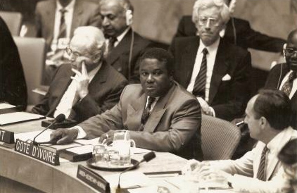 이라크의 쿠웨이트 침공에 관한 유엔 안전 보장 이사회의 회의에서 (맨 왼쪽이 페레스 데 케야르 사무총장. 중앙은 장자크 베시오 코트디부아르 대표)