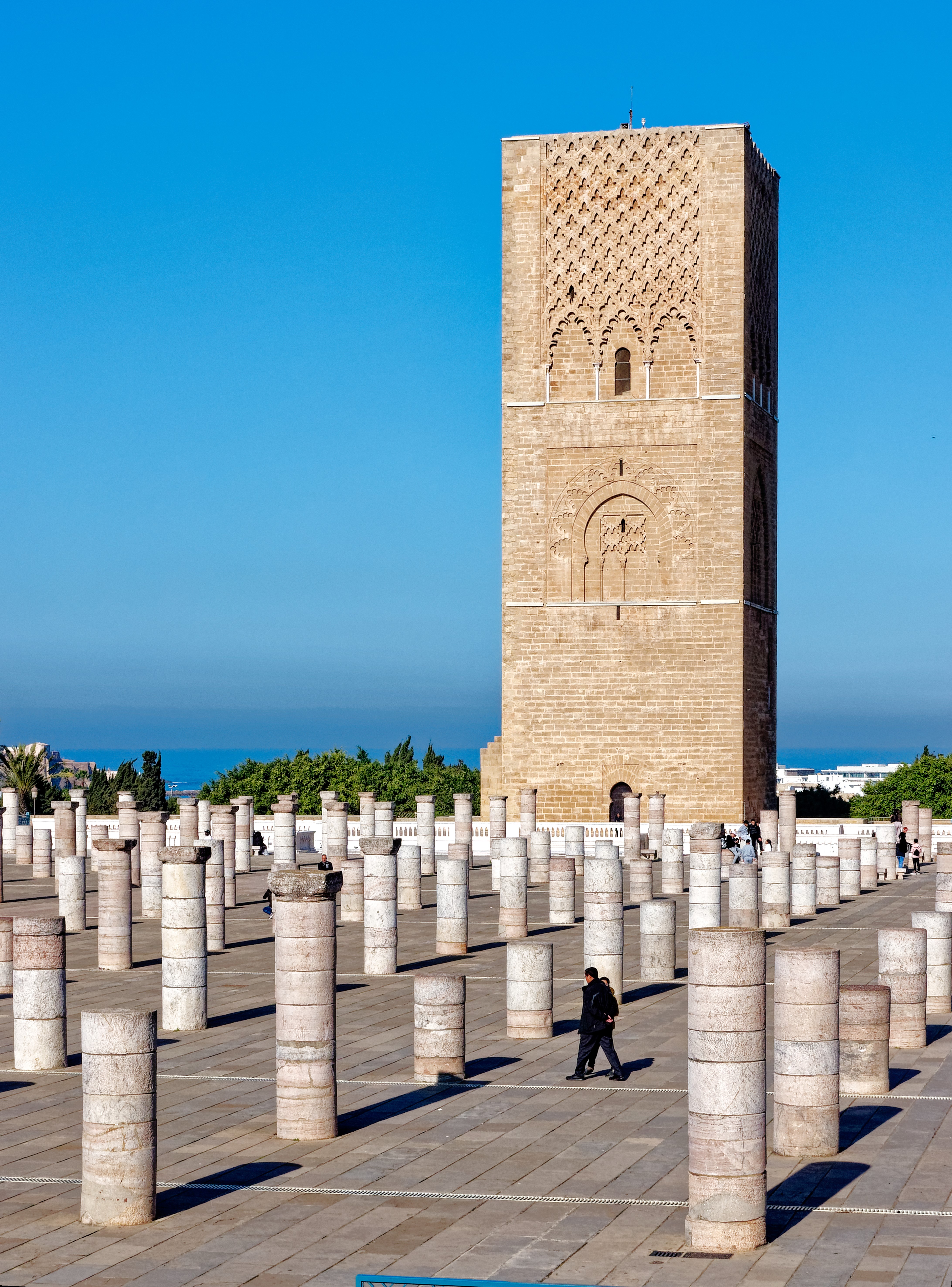 하산 탑은 알모라비 왕조의 야쿠브 알 만수르가 라바트에 건설하려 했던 미완성 모스크의 미나렛으로, 현재 모로코 라바트의 랜드마크이다. 1191년에 건설이 시작되었으나, 1199년 야쿠브 알 만수르의 사망으로 인해 중단되었다. 이 탑은 세비야의 히랄다와 마라케시의 쿠투비아 모스크의 미나렛을 모델로 했으며, 높이와 경사로 방식의 상승 방식은 알렉산드리아 등대의 영향을 받았다. 20세기에는 프랑스 보호령과 모로코 고고학자들에 의해 발굴 및 재건되었고, 1960년대에는 모하메드 5세 영묘 건설을 위해 주변 부지가 변모되었다. 1995년 유네스코 세계 유산 잠정 목록에 등재되었으며, 2012년에는 라바트의 역사적 유적지를 포함하는 더 큰 유적지의 일부로 세계 유산 지위를 획득했다.