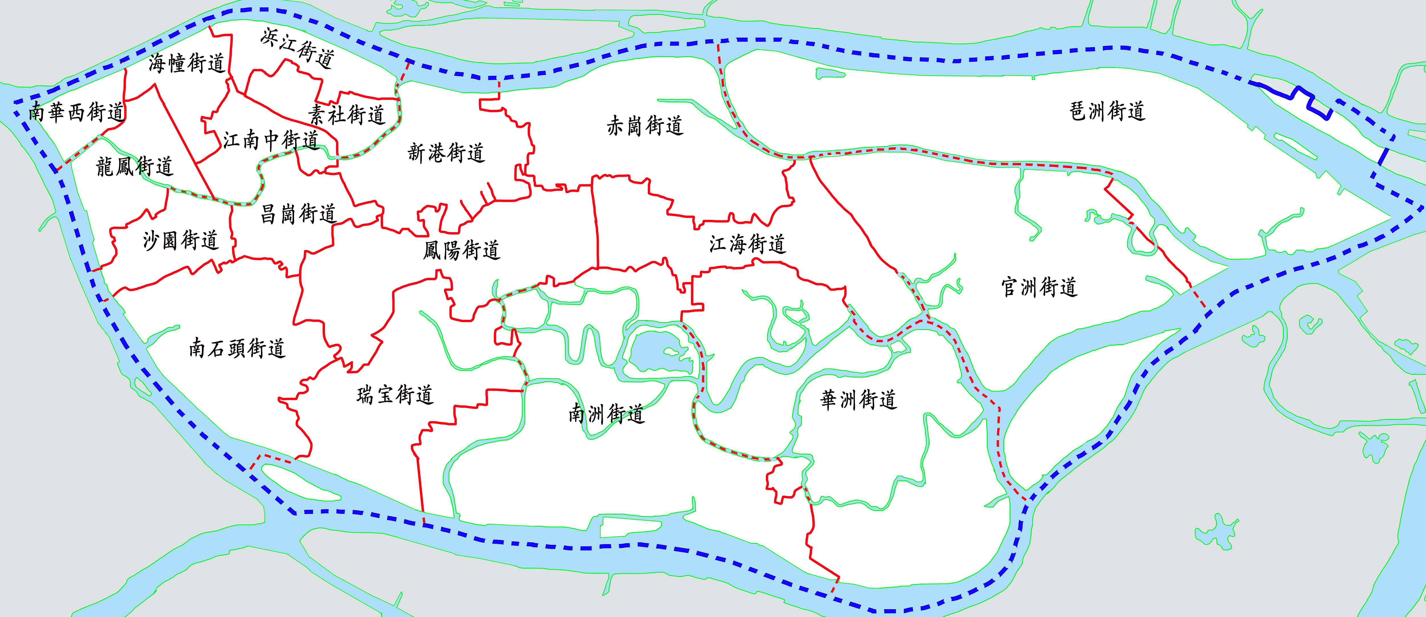 파저우 가도 | 琶洲街道 | Pázhōu Jiēdào | pa4 zeo1 gai1 dou6 | 29,851 | 10km2 |
