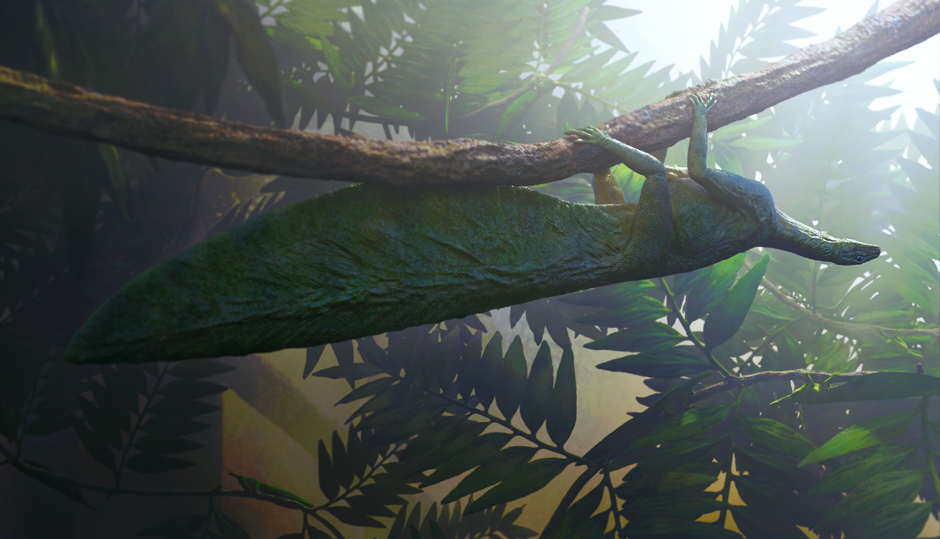 그러나 사지 형태에 대한 여러 연구와 더불어, 광범위한 꼬리 근육의 증거가 없는 다소 섬세한 꼬리 척추뼈를 통해 수생 가설은 배제되었으며, 다른 드레파노사우루스처럼 수목성이었을 가능성이 높다.[2]