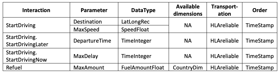 매개변수 테이블은 주어진 상호 작용 클래스에 사용할 수 있는 매개변수를 지정한다. 매개변수는 상속되므로, 상호 작용 클래스는 해당 클래스에 직접 정의되거나 상위 클래스에 지정된 모든 매개변수를 포함한다.
