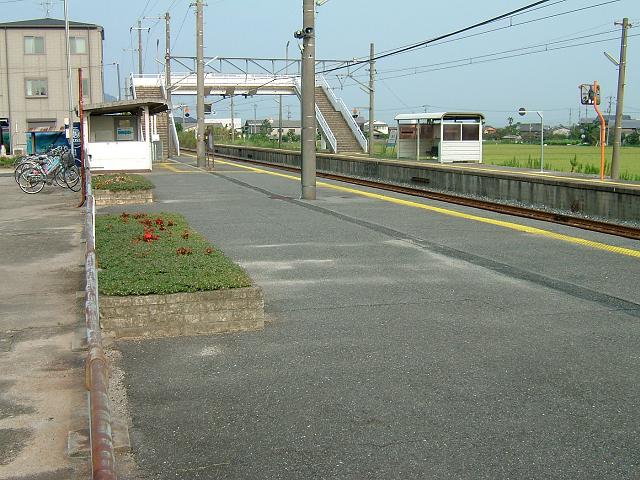 코지마역 관리의 무인역으로, 상대식 승강장 2면 2선을 가지며 교환 설비를 갖춘 지상역이다. 역사는 따로 없으며, 상행 홈 중앙 부근의 입구에서 바로 홈으로 들어가는 형태이다. 반대편 하행 홈으로는 육교로 연결된다.[1]