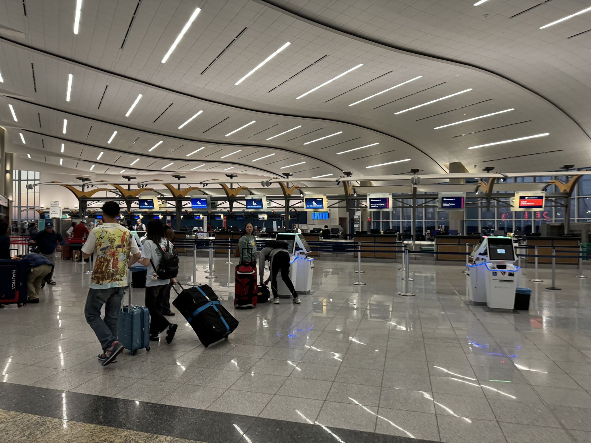 델타 항공은 7개의 모든 탑승동에서 허브를 운영한다. T 탑승동 남쪽과 A, B 탑승동 전체는 델타 항공의 국내선 주 노선 전용으로 사용된다. 델타 항공의 지역 항공편(델타 커넥션)은 주로 C 탑승동 북쪽에서 운행된다. C 탑승동 남쪽은 사우스웨스트 항공이 운영 기지로 사용한다. 다른 모든 국내선 항공사는 D 탑승동 또는 T 탑승동 북쪽에서 운항한다. 일부 델타 및 델타 커넥션 항공편도 D 탑승동에서 운항한다.[67]