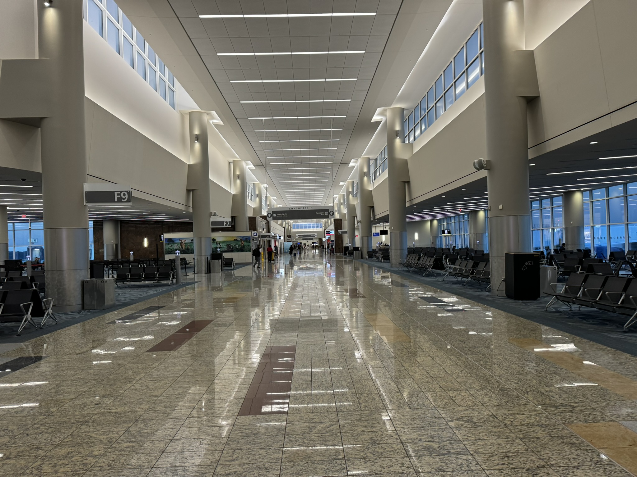 탑승동 T는 국내선 터미널 건물에,[63] 탑승동 F는 국제선 터미널 건물에 각각 연결되어 있다.[63] 나머지 5개의 탑승동(A~D는 국내선 전용, E는 주로 국제선용)은 두 터미널 사이에 위치하며, 공항 지하의 더 플레인 트레인 및 보행자 터널을 통해 연결된다.[63] 터미널 간 이동에는 셔틀 버스도 이용 가능하다.