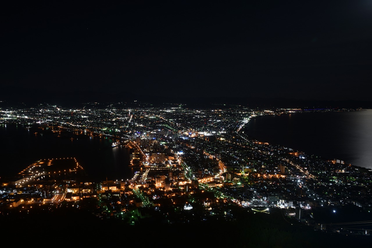 하코다테는 카메다 반도 중앙에 위치하며, 하코다테산이 내려다보이는 곳에 있다. 정상에는 등산로, 케이블카 또는 차량으로 갈 수 있다. JR 하코다테 역에서 출발하는 관광 버스나 직행 버스를 이용하여 하코다테산 정상에 오를 수도 있다.[10] 울퉁불퉁한 산의 별칭으로는 소의 등을 닮았다는 의미에서 ''가규잔''(소 등산)이라는 이름이 알려져 있다.