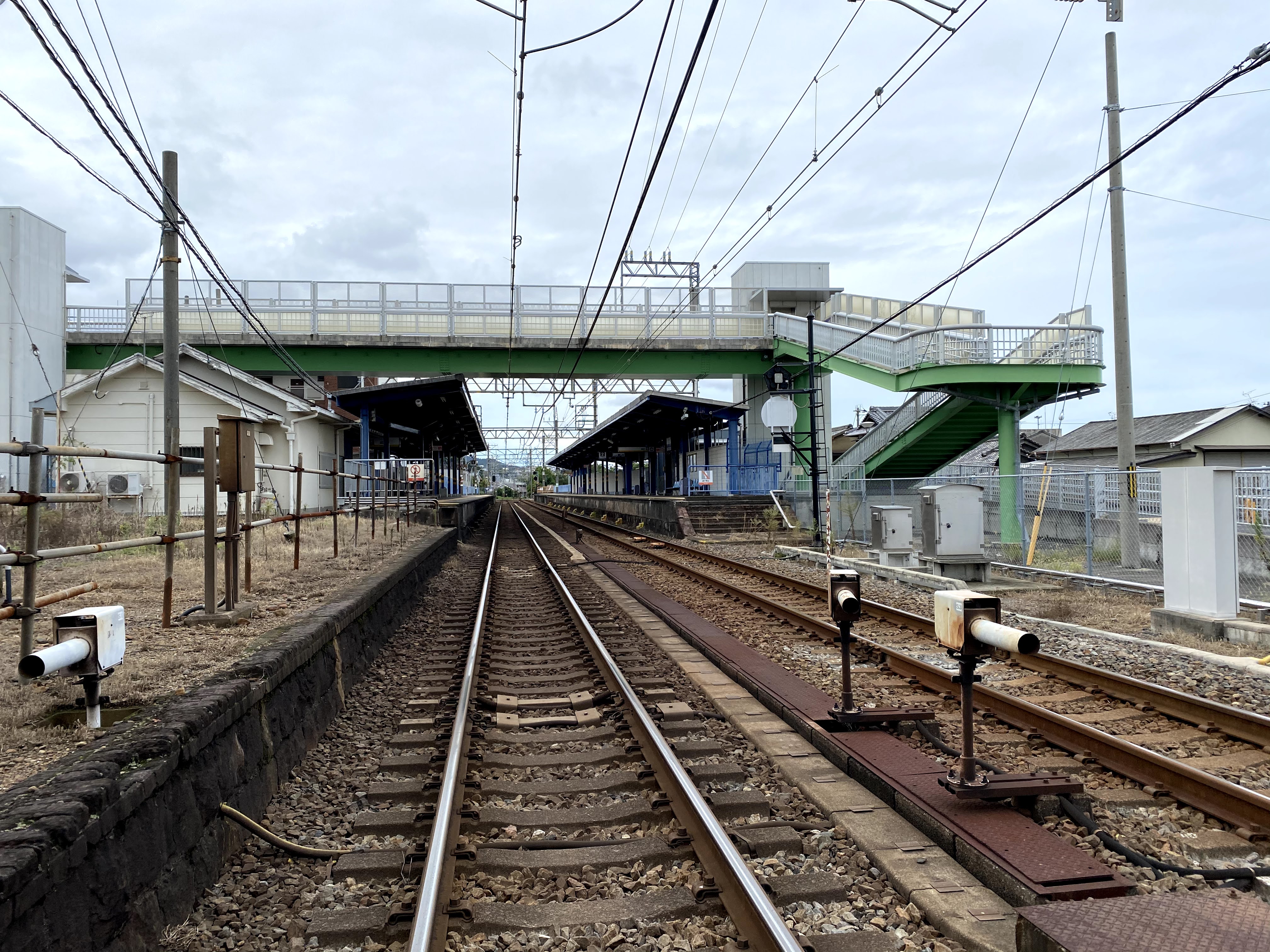 현재의 상행(바다 측) 역사가 있는 부지는 옛날에는 효시코에 화물 열차의 입환(조립)이 이루어졌다. 일부는 현재도 남아 있으며, 보선 차량의 유치선(상시가 아님)으로 이용되고 있다.